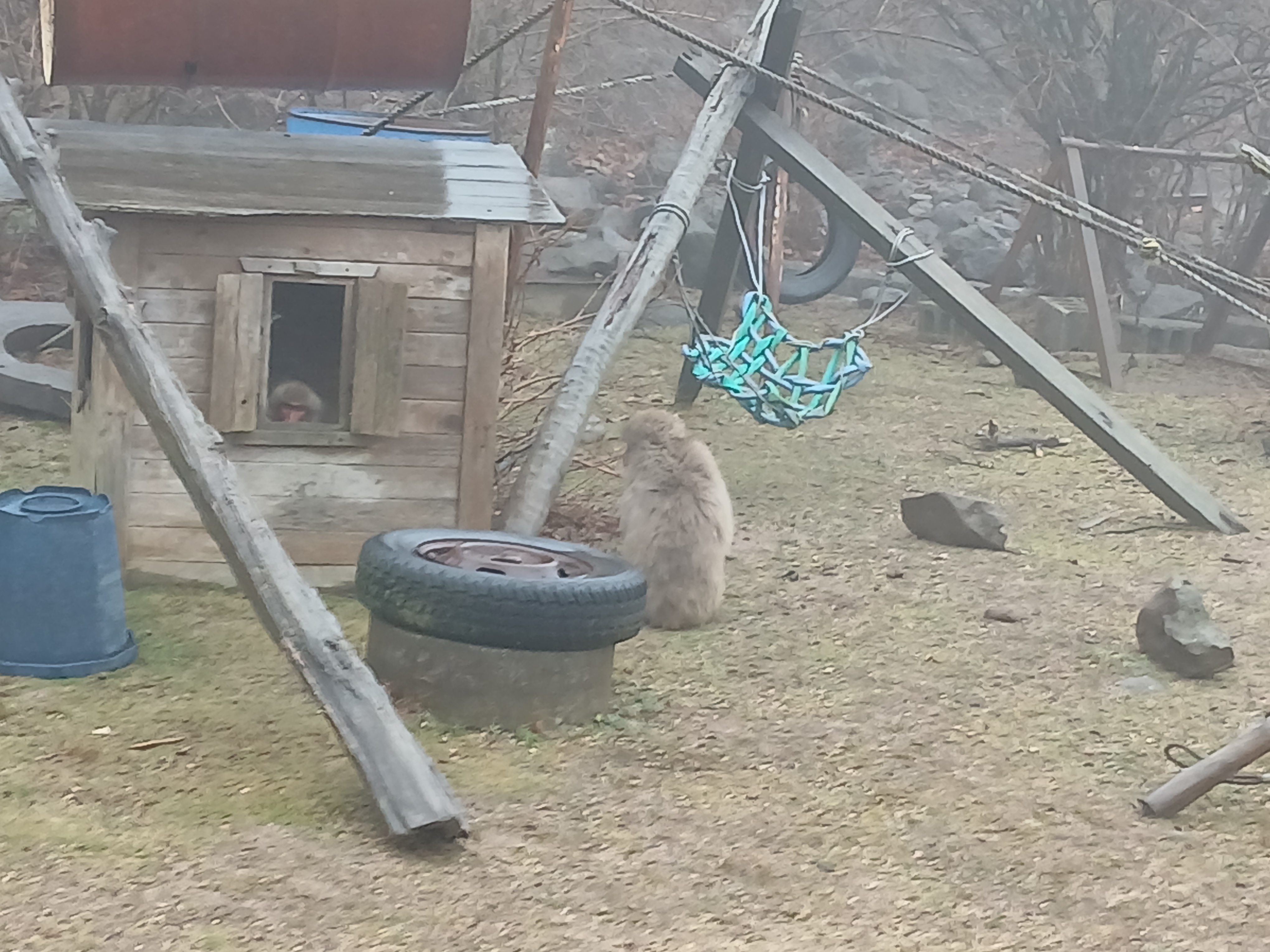 추워서 원숭이들이 모두 모여 웅크리고 있거나, 움막같은 곳에서 나오지 않고 있었다.